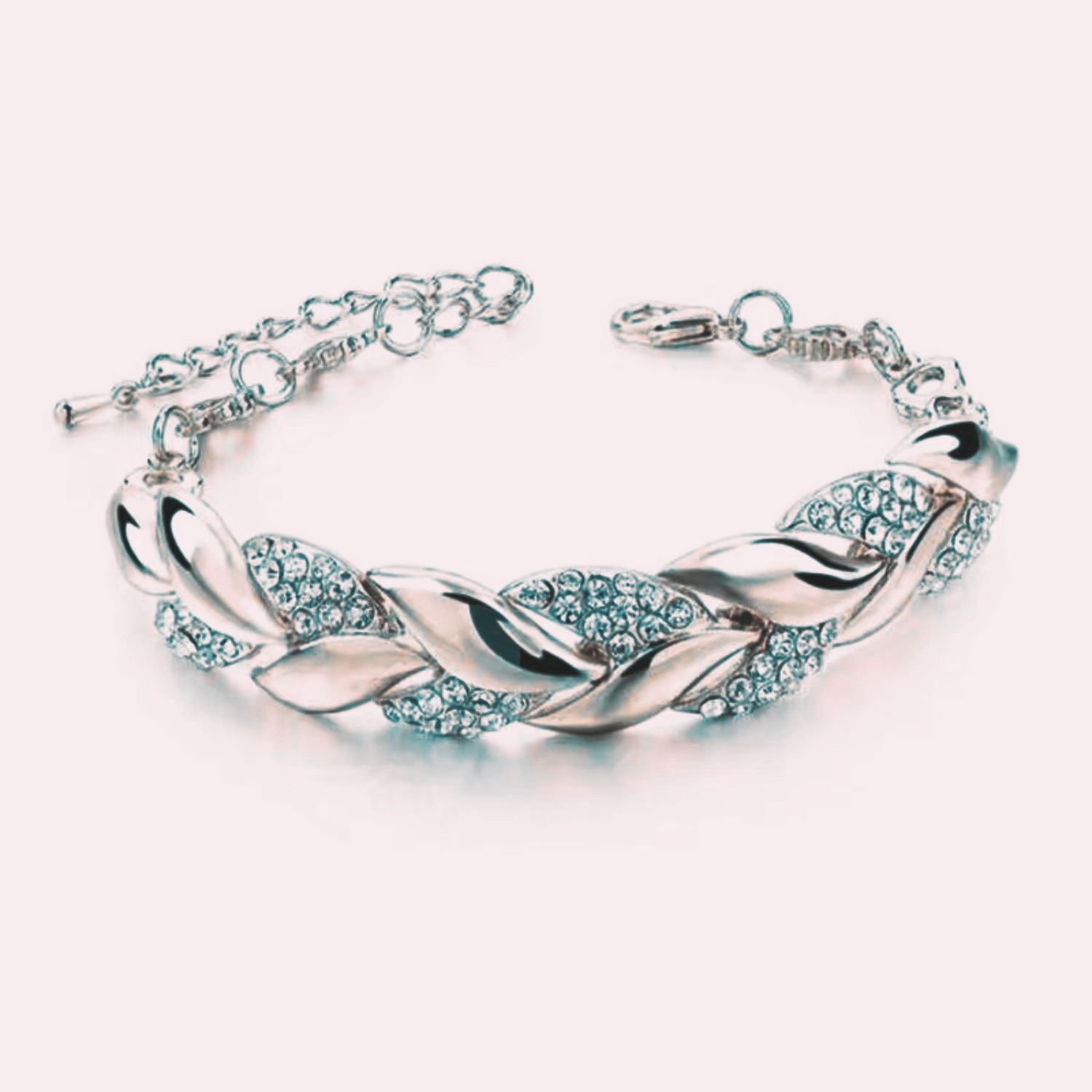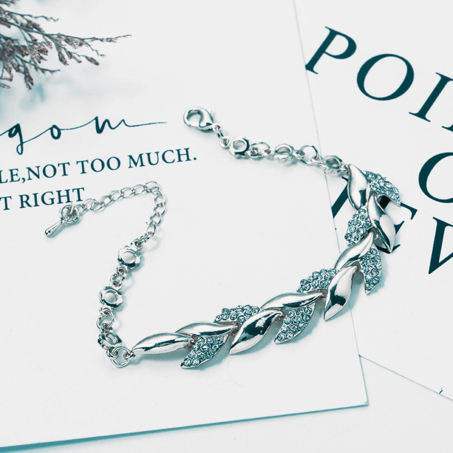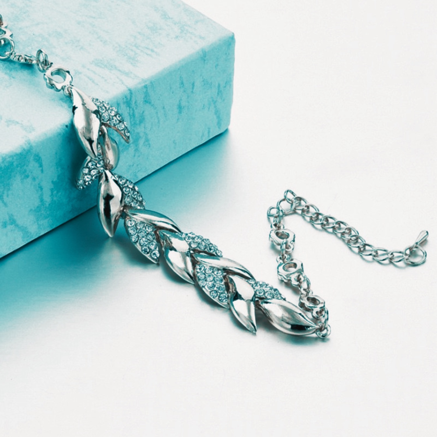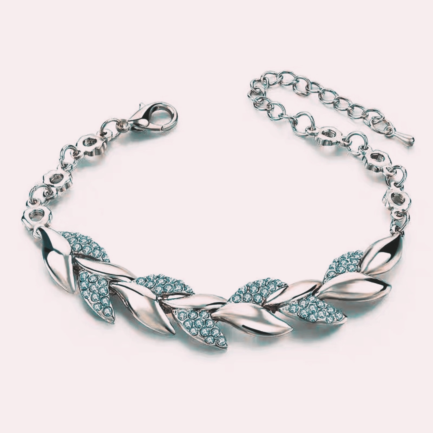 1. Silver Plated leaf Shape Zircon inlaid chain bracelet for women.