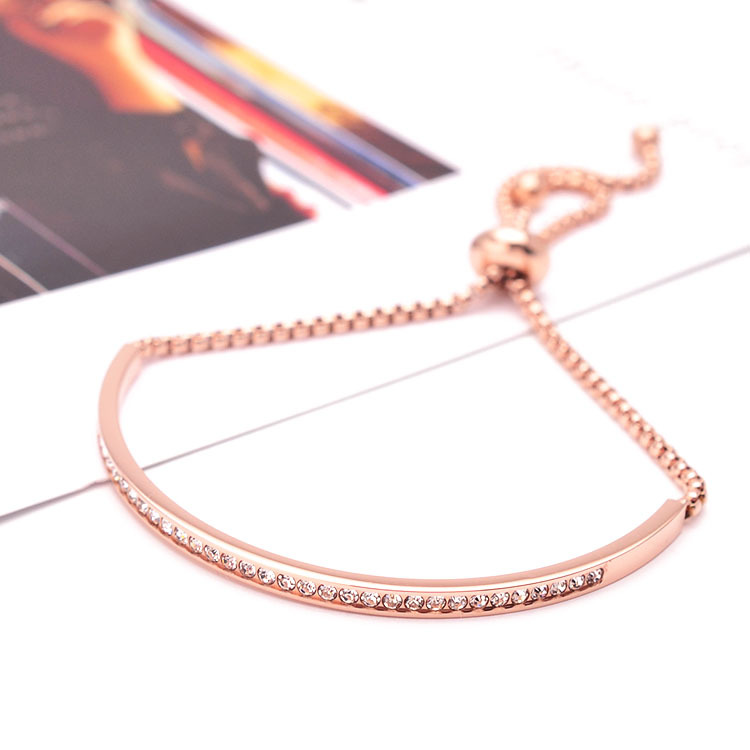 1. Rose Gold Plated Zircon inlaid adjustable chain bracelet for women.