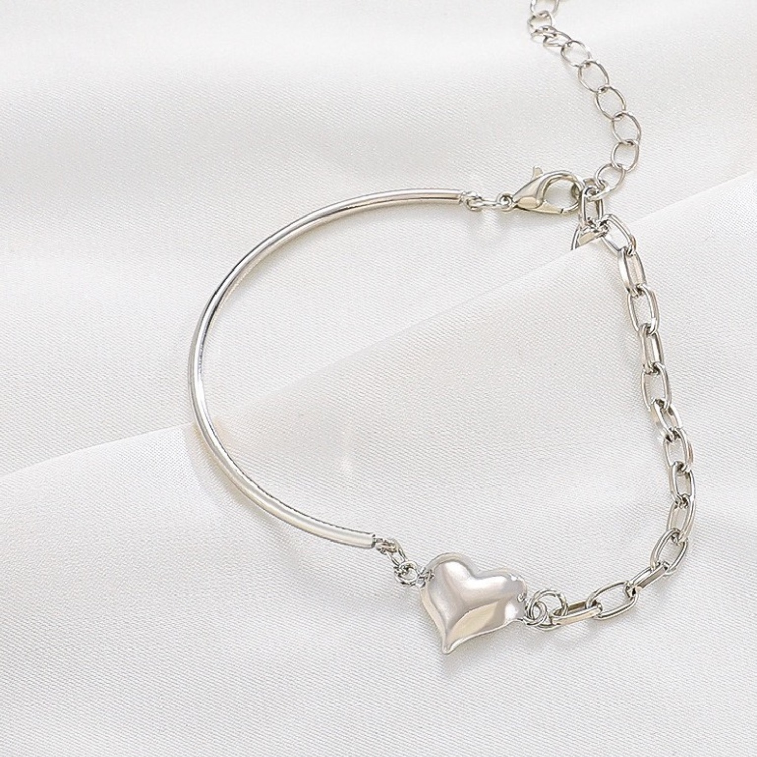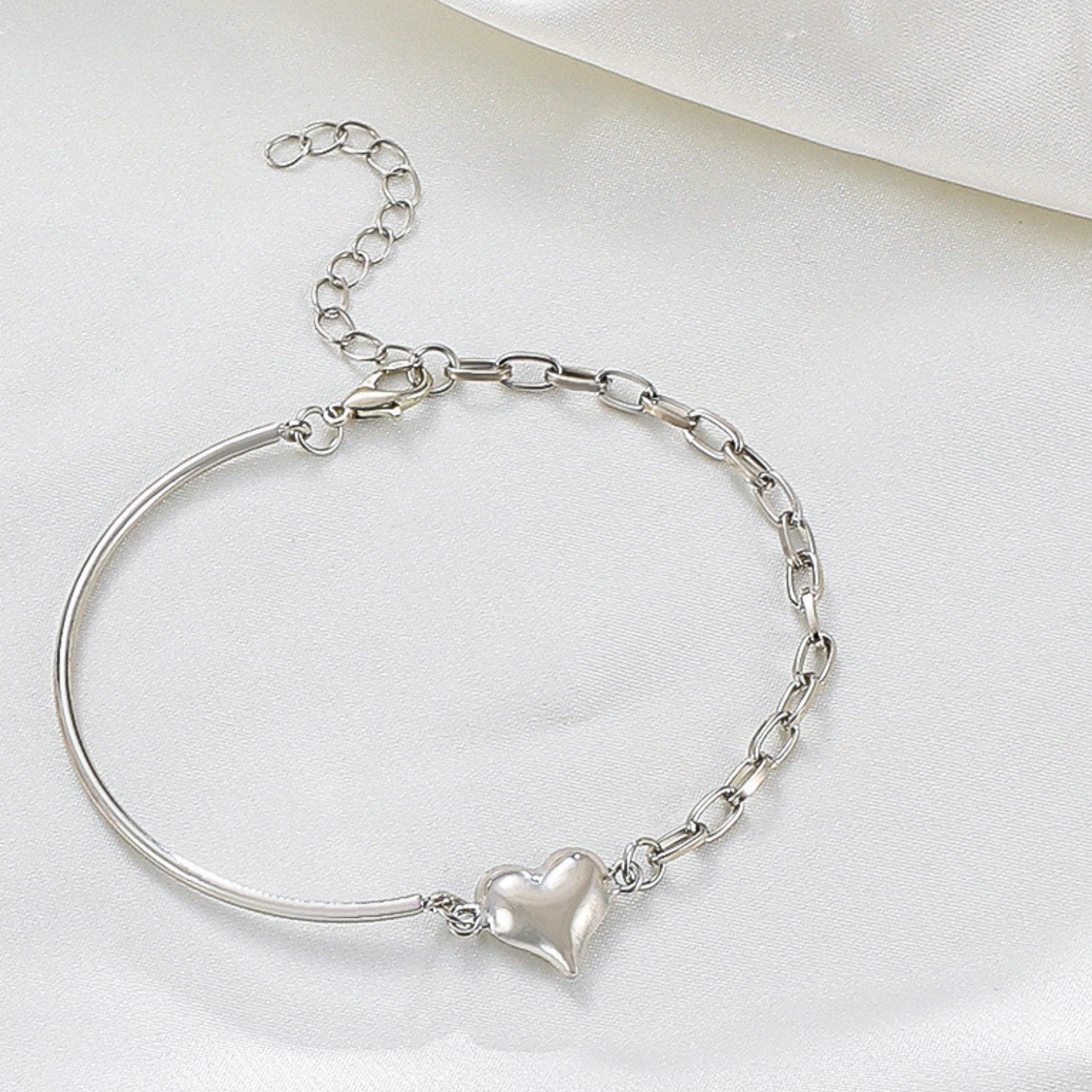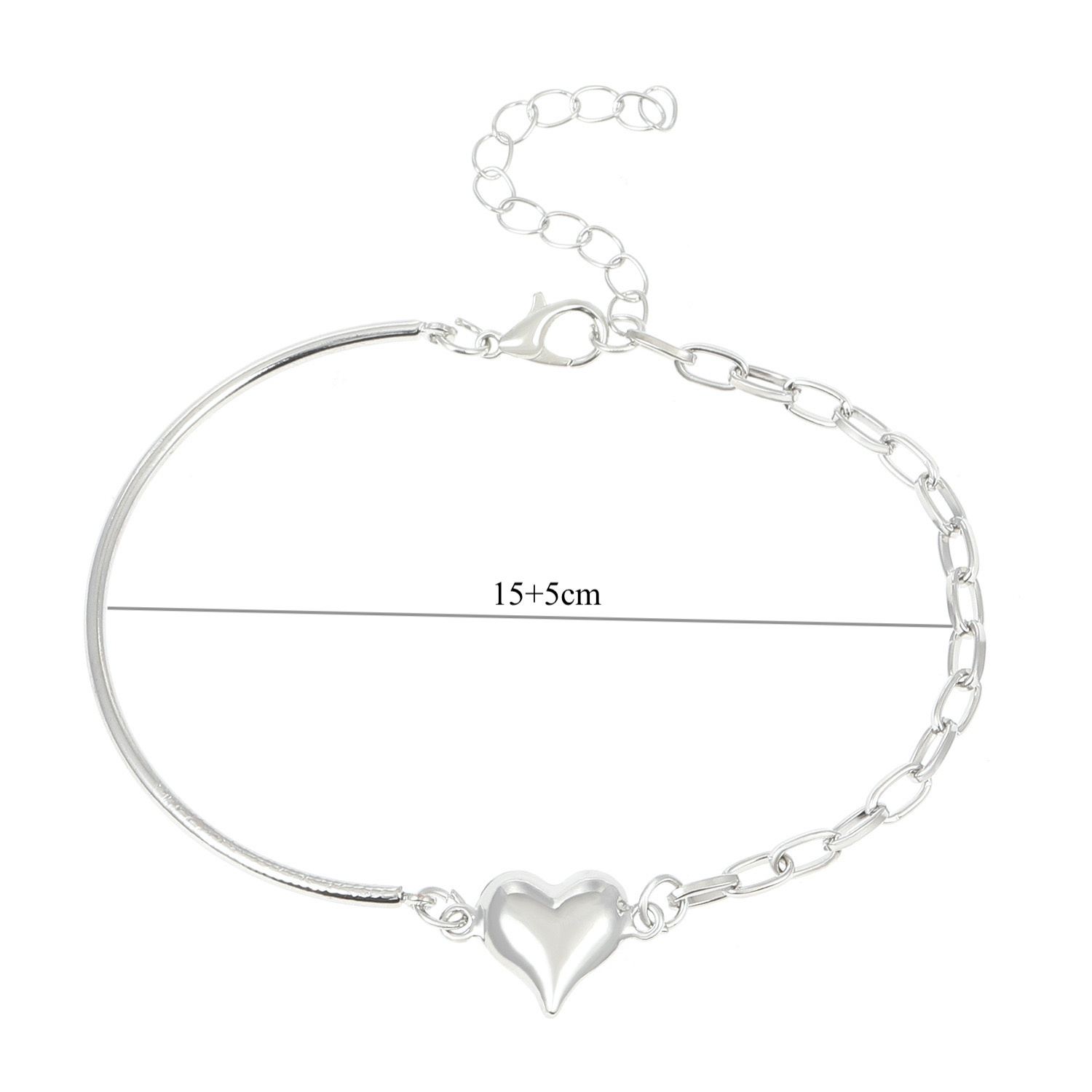 1. Sparkling silver plated heart shape pendant adjustable bracelet for women