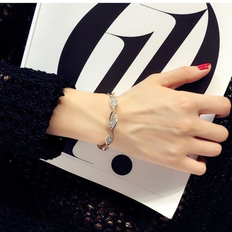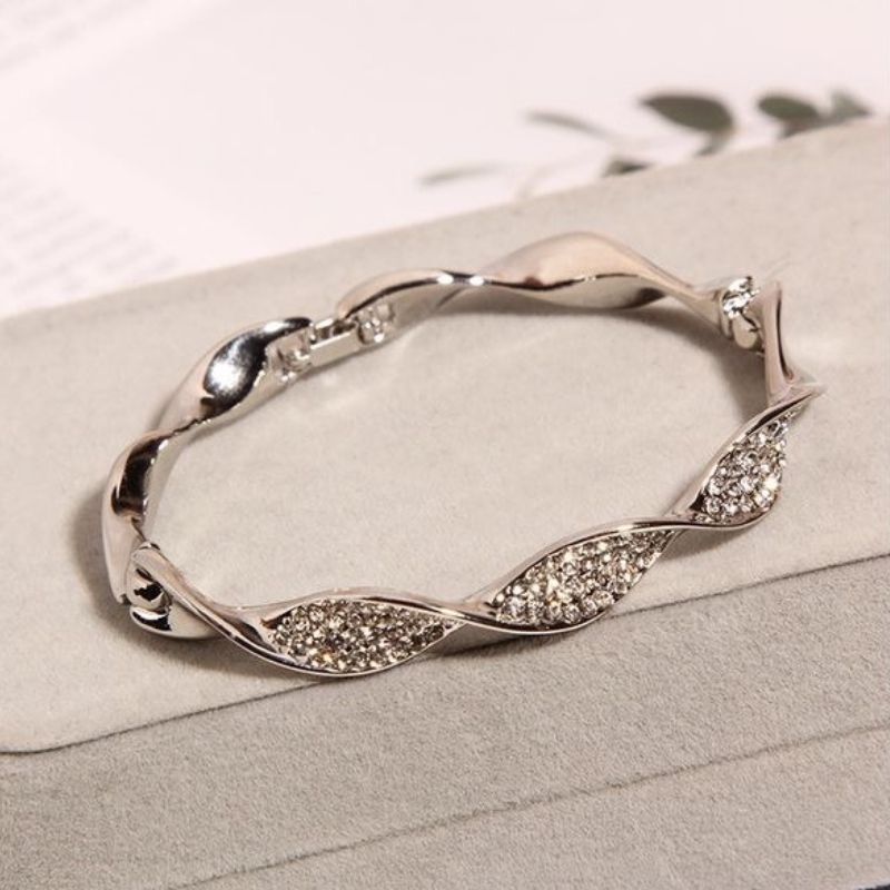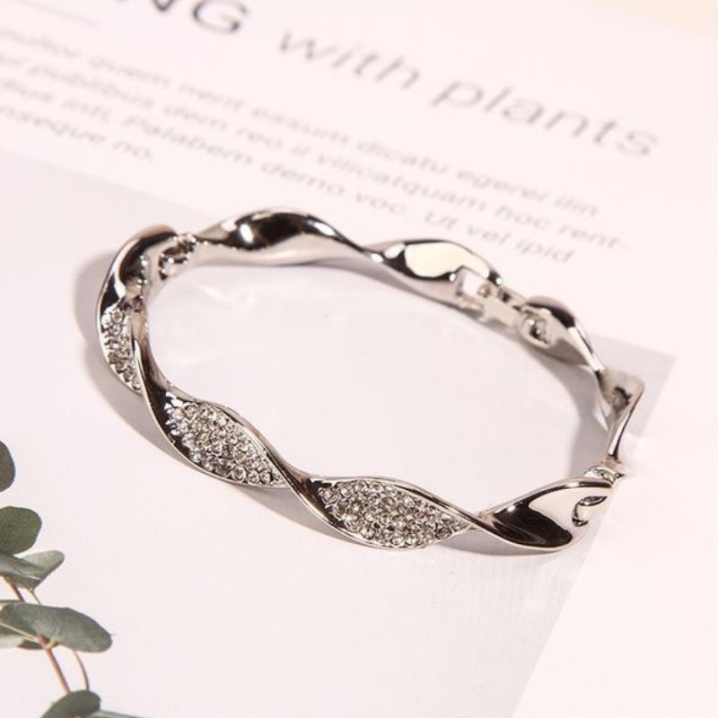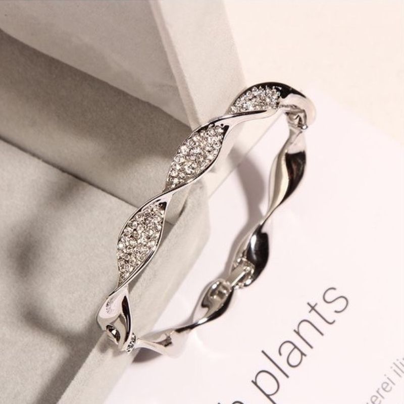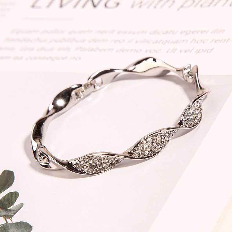 1. Classic silver  plated twisted bangles shape bracelet with zircon inlaid with open adjustable end.