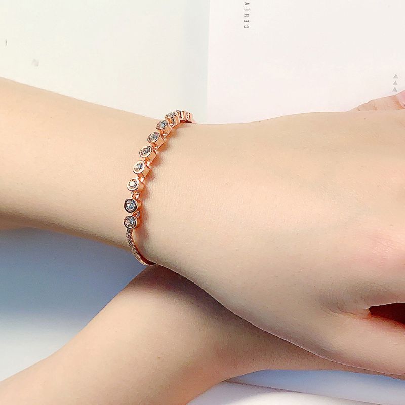 1. Sparkling cubic zircon inlaid rosegold plated adjustable bracelet for women