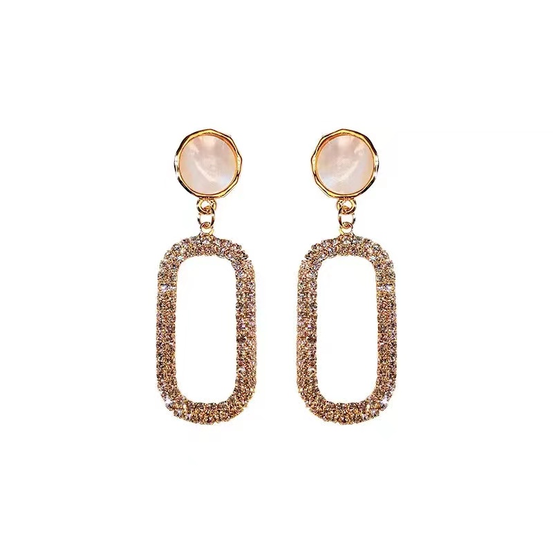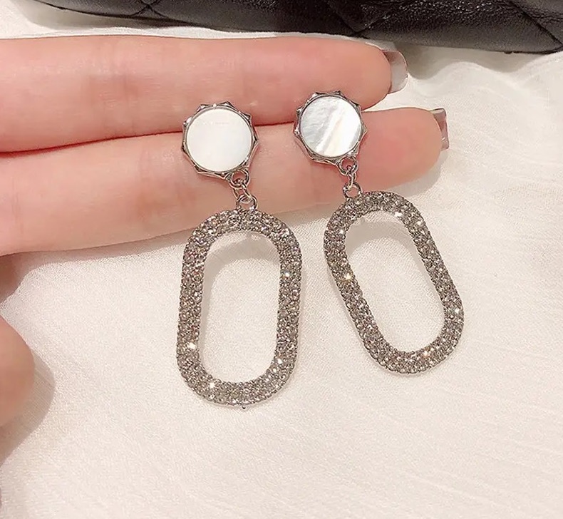 1. Oval Shape Long Zircon inlaid design Earring for women.