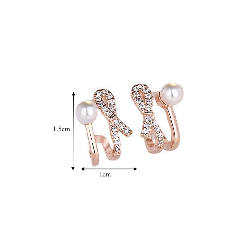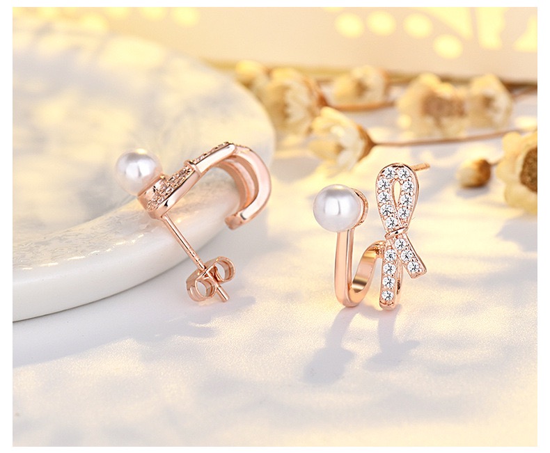 1. Exquisite rose gold plated ear studs with flawless pearl and zircon for women