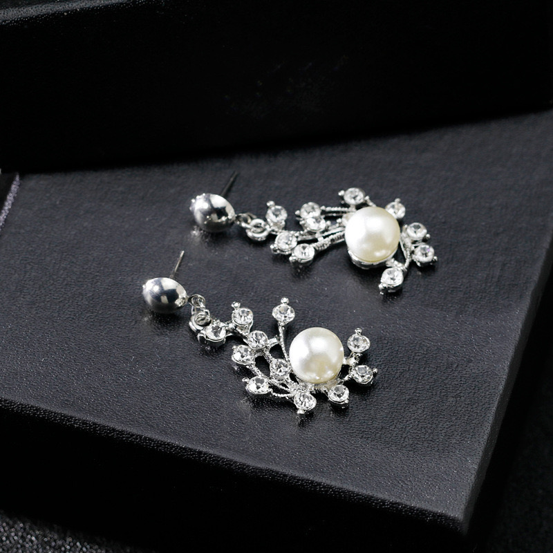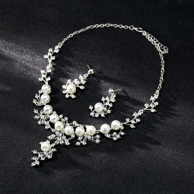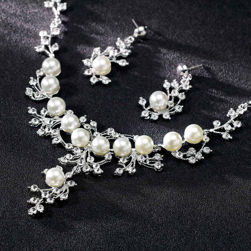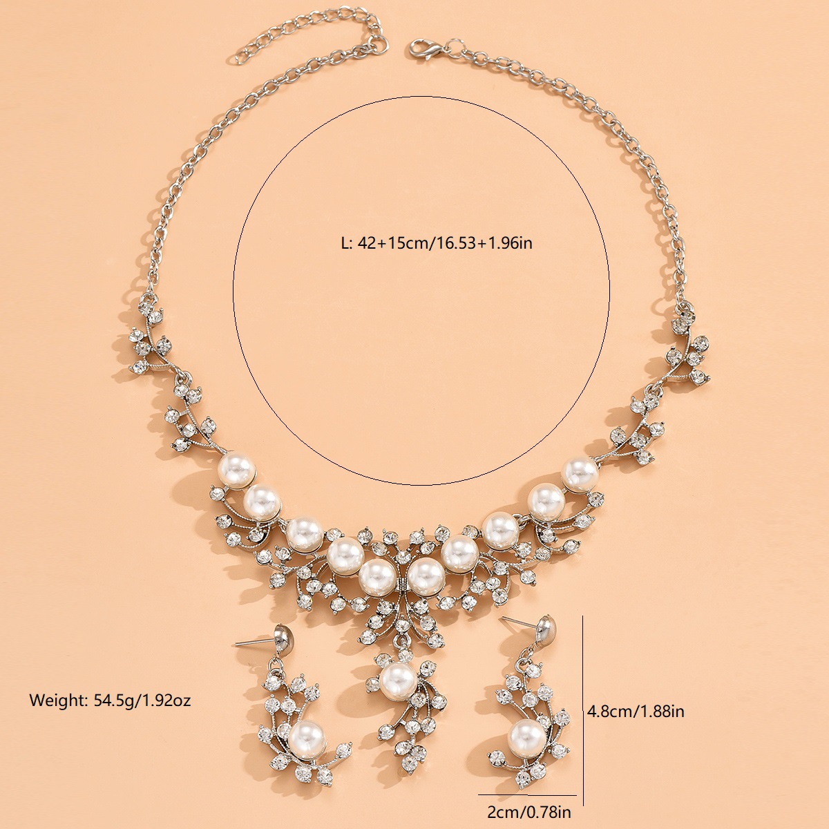 1. Elegant Silver Plated flawless Pearl- Zircon inlaid Necklace earring set for women