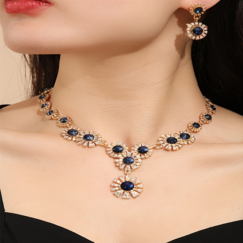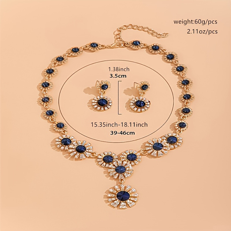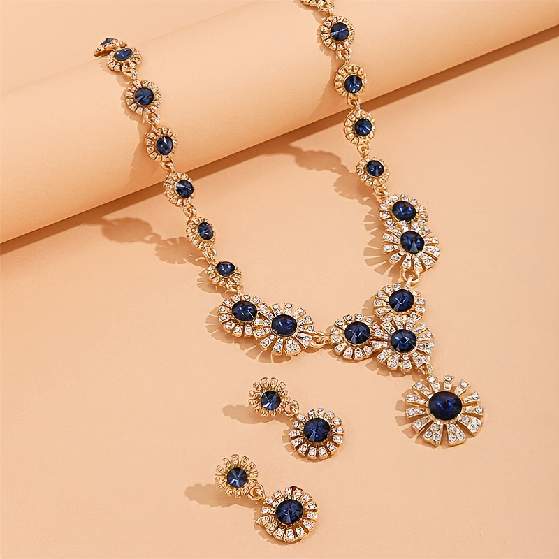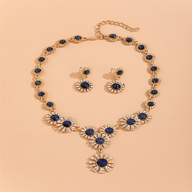 1. Sparkling gold plated necklace-earring set with blue color natural gemstone inlaid with for women