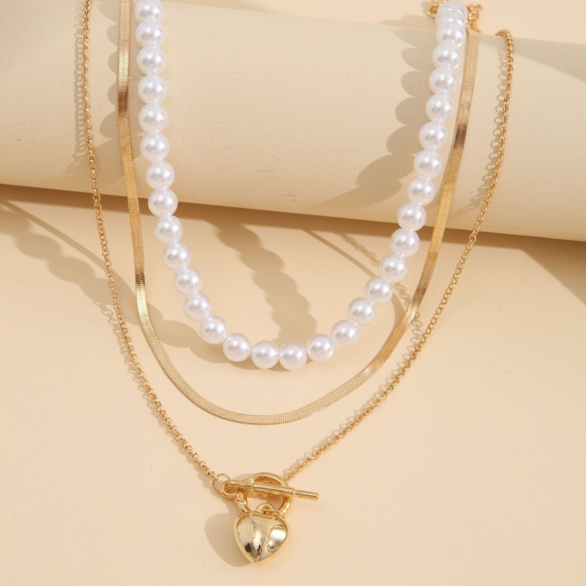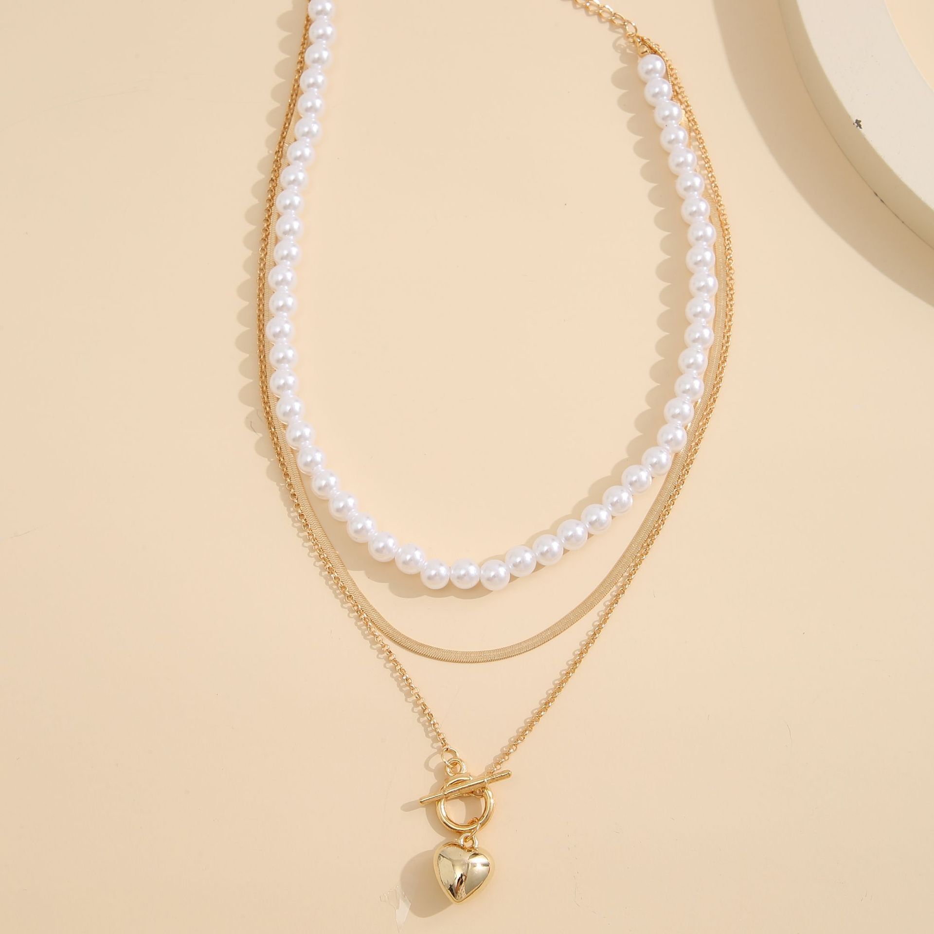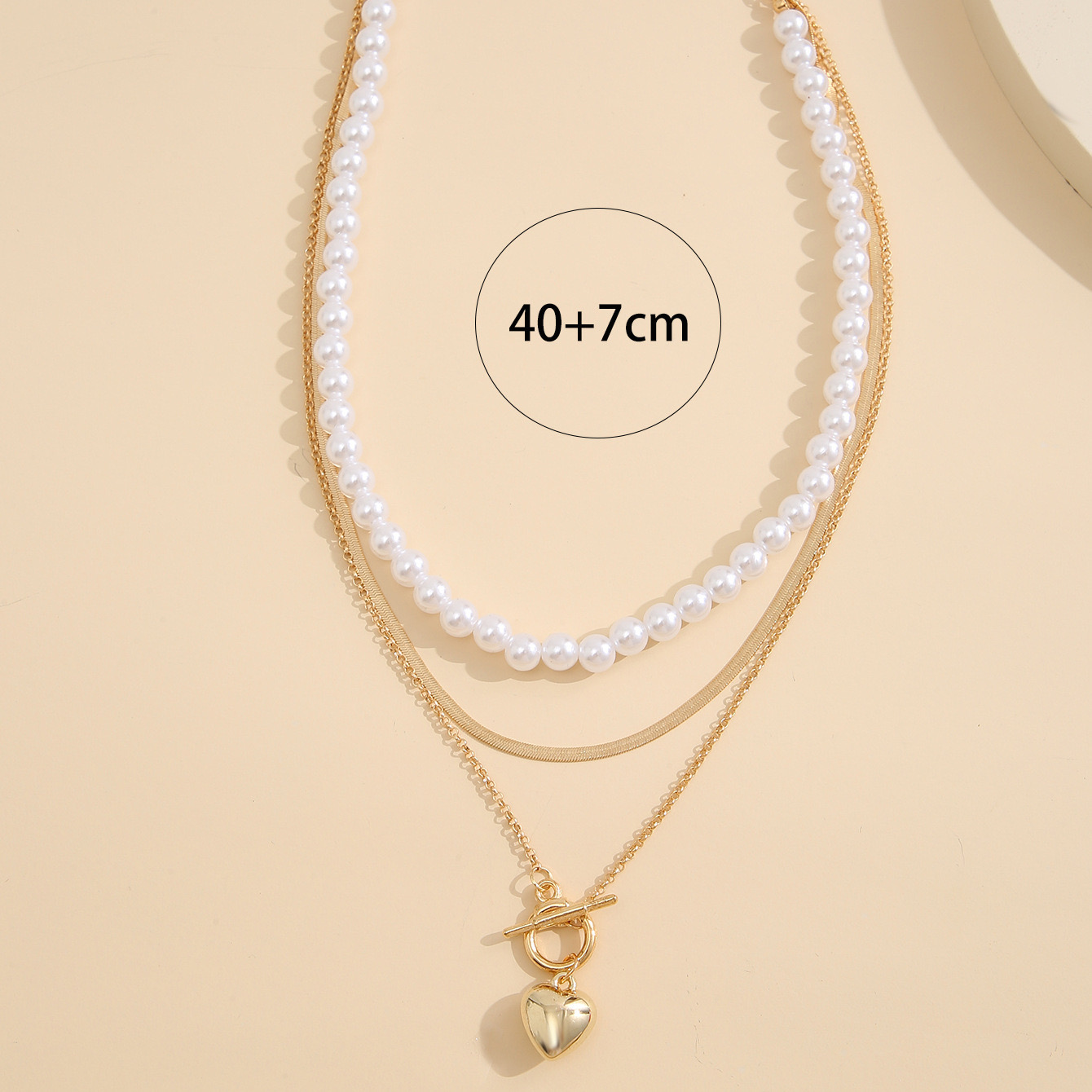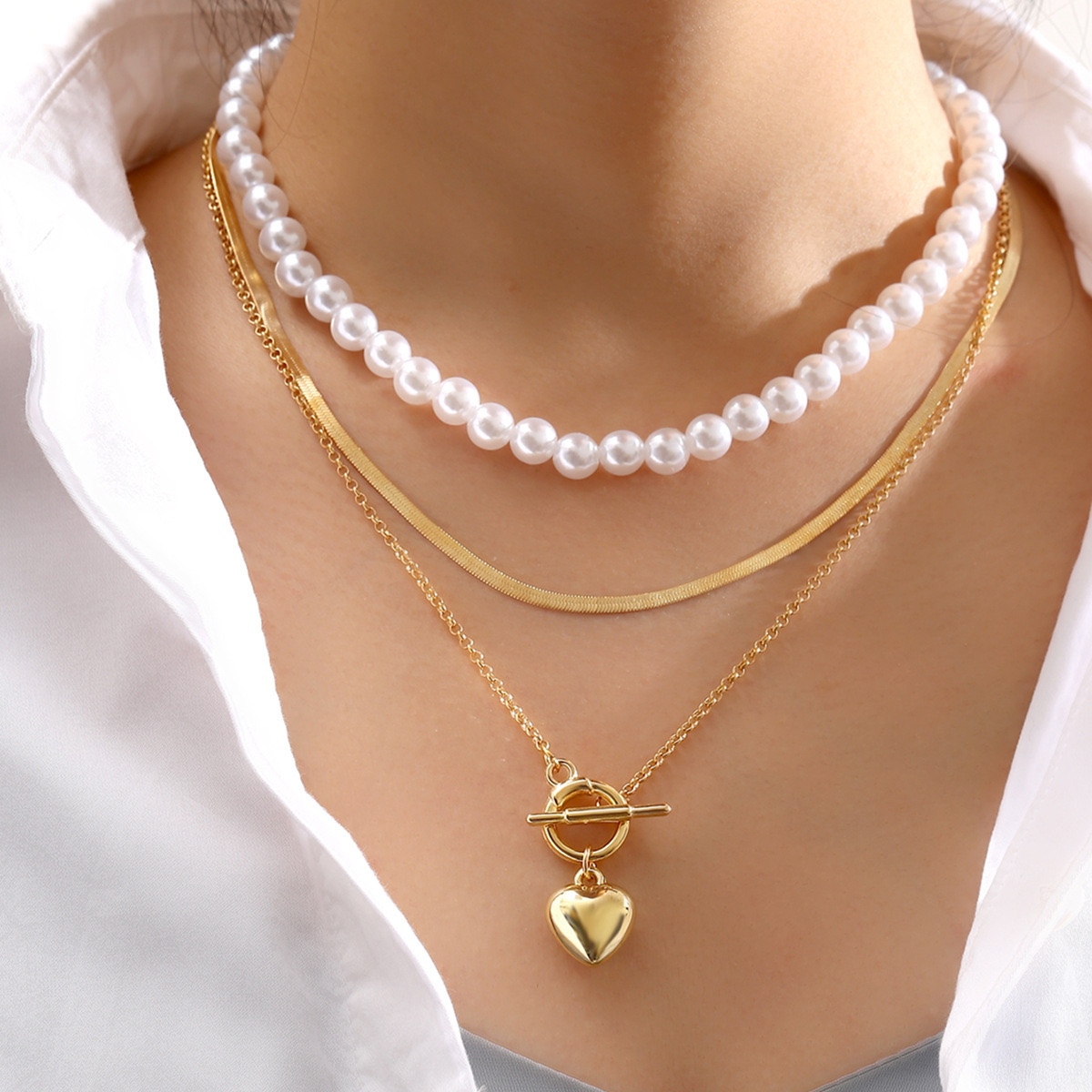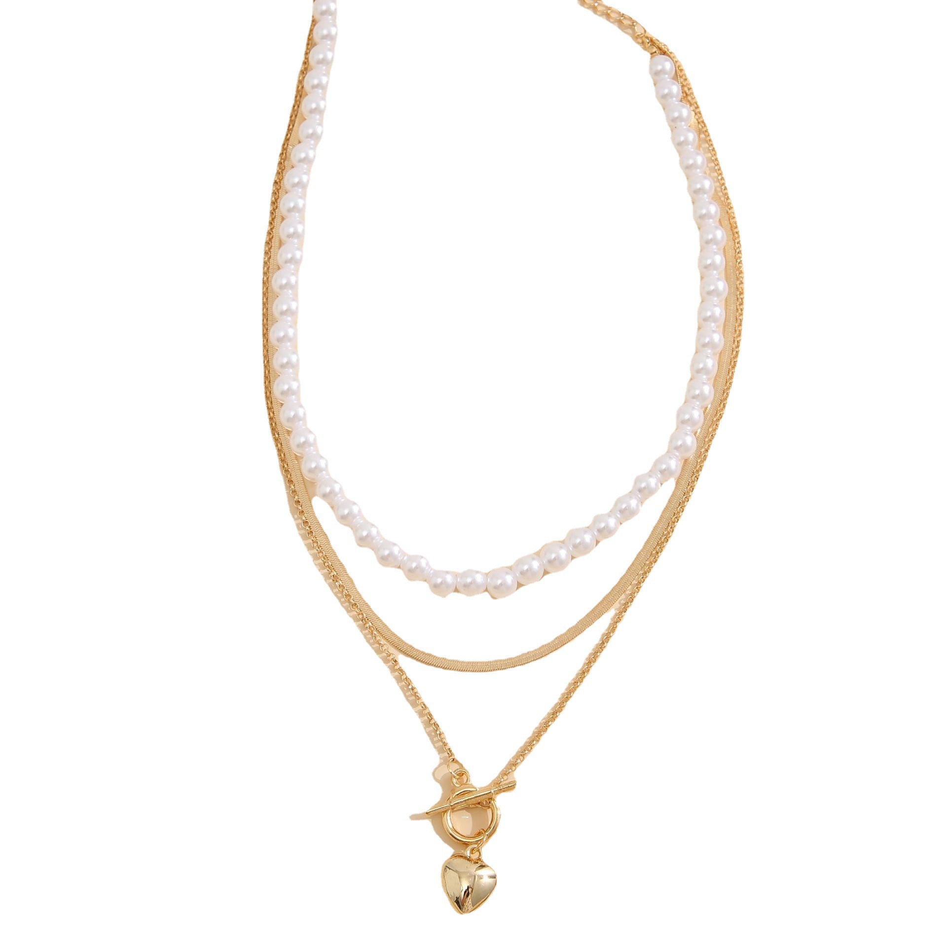 1. Gold plated  Fashion Multi Layer neck chain with pearl and heart shape pendent for women