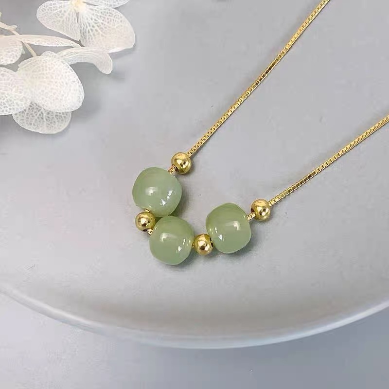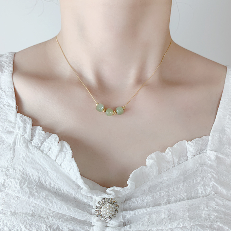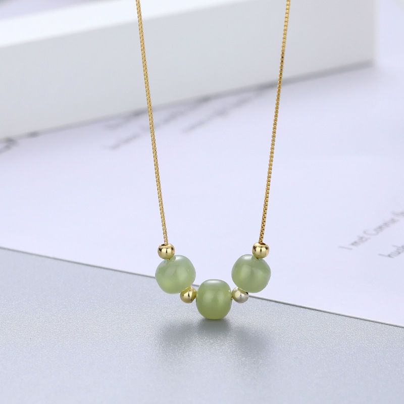 1. Delicate gold plated chain with natural gemstone beads necklace for women