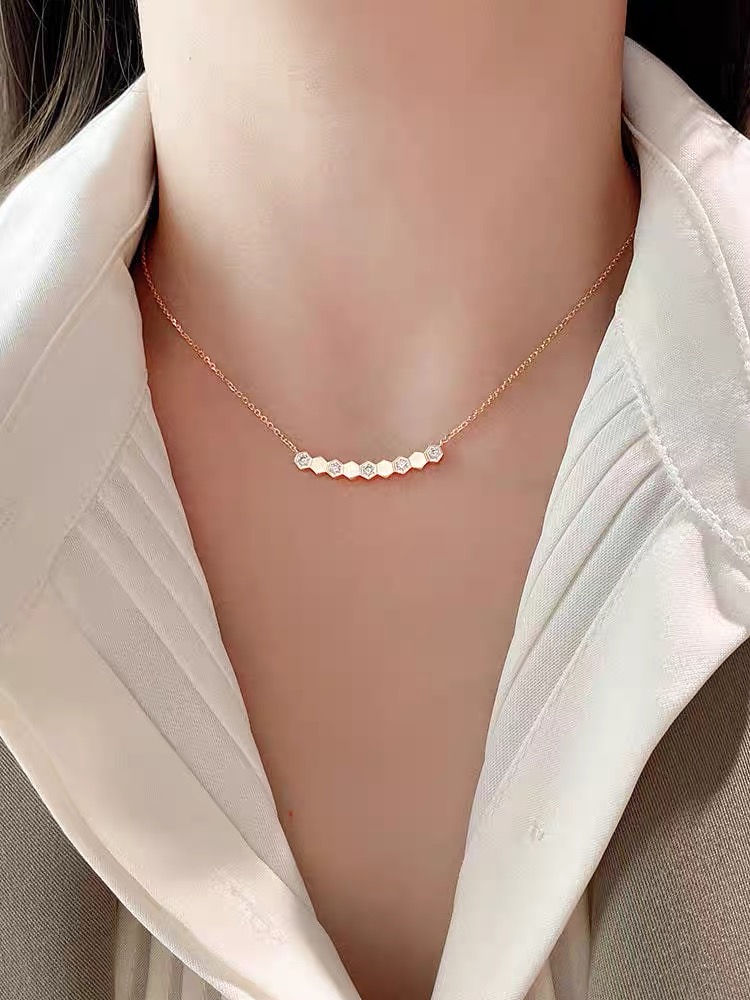 Exquisite gold plated necklace inlaid w...