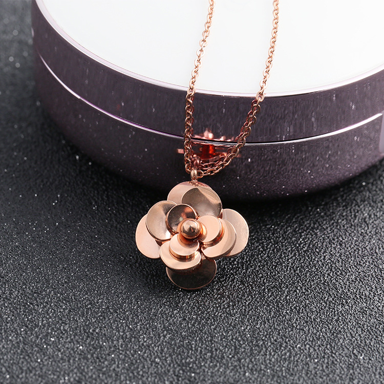 1. Delicate rosegold plated chain with flower shape pendent necklace for women